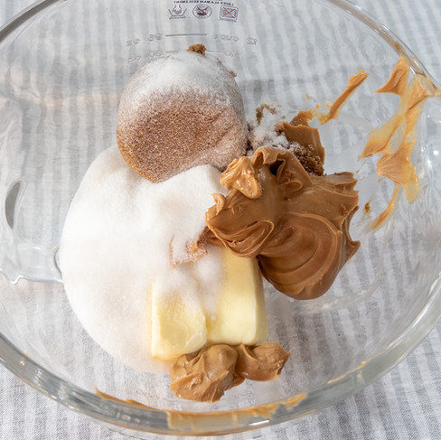 Step 2: Using a stand mixer with the paddle attachment or a large bowl using an electric mixer, blend 1 cup softened butter, 1 cup sugar, 1 cup brown sugar, and 1 cup creamy peanut butter until well combined. Add the 2 eggs, one at a time, mixing after each egg. Add 1/4 cup milk and 2 teaspoons vanilla and mix. Scrape down the side and bottom of the bowl and mix again until fully combined. Slowly add the dry ingredients to the wet ingredients and mix until completely combined.Â