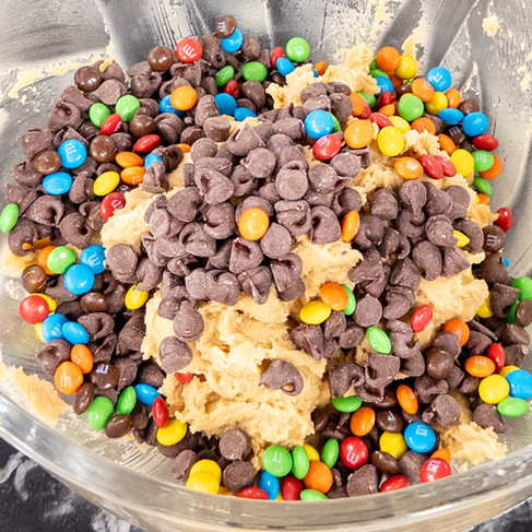 Chocolate chips and peanut butter M&M’s add texture and bursts of flavor. If you are a peanut butter love, try adding peanut butter chips!